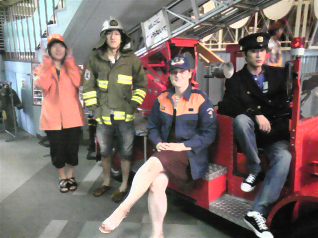 その後、展示してある消防ヘリの操縦席に座ってみたり、通報体験や展示されている最近の災害の写真を見ました。